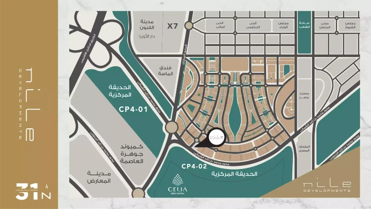 31 North Tower is located in the heart of the New Administrative Capital, in the Downtown area, with a direct and distinctive view of the Green River, specifically in the Towers area. The 31 North project overlooks three main streets on the Northern Bin Zayed Axis on a 124-meter-wide street, and on the main Downtown area street and the entrance to the government district in the Administrative Capital. The tower also overlooks a number of important places in the Administrative Capital, which are highlighted in the following paragraph.